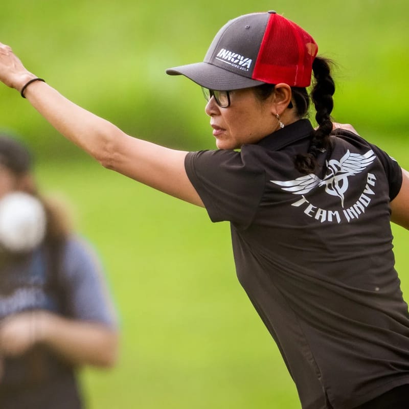 • Ohn Scoggins: 44-letnia legenda disc golfa, zaczęła grać w 2010, gdy przeprowadziła się z Laosu do USA. Znana z długich puttów, którymi nadrabia krótszy zasięg drive’ów i świetnej relacji z widzami na turniejach.