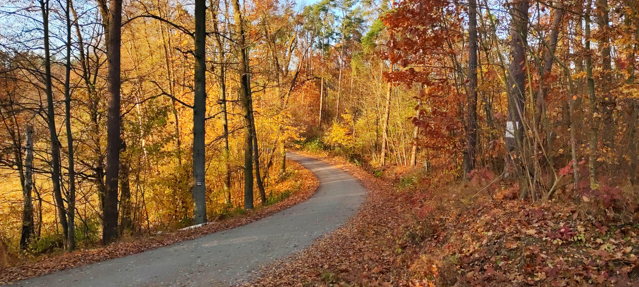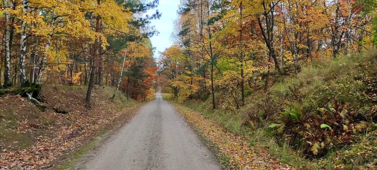 Gdy w czasie nierozważnie przeciągniętego wypadu pod koniec października wrócił ból kolan, bałem się, że listopad będzie kolejnym miesiącem przerwy od roweru. Na szczęście po dwóch dniach ból ustąpił i mogłem wybrać się na ostrożne pięćdziesiąt kilometrów po lasach. Pogoda dopisała i jechało się świetnie, więc wróciłem zachwycony i z masą zdjęć złotej jesieni.