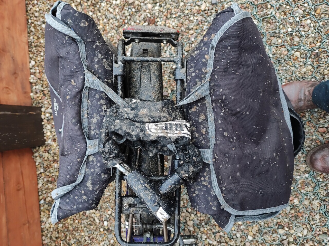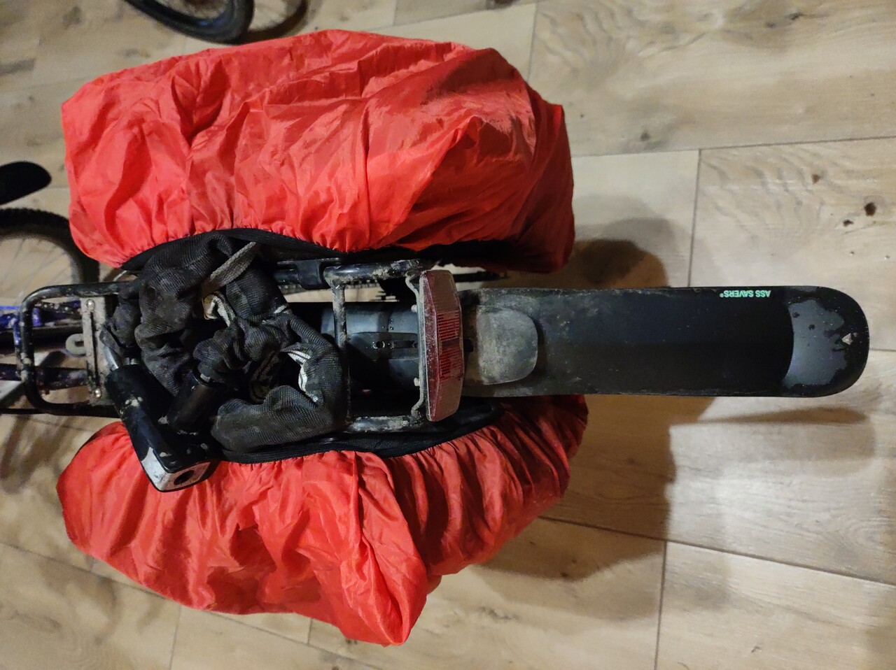 Kolejną zmianą w Treku wymuszoną przez zmianę opon było przedłużenie błotników. Po pierwszej jeździe po błocie okazało się, że dotychczasowe błotniki, które sprawdzały się z poprzednimi oponami, teraz są zdecydowanie za małe, by powstrzymać chlapanie z szerokich Smart Samów. Dokupiłem sprytne przedłużki z firmy Ass Saver, których montaż wymagał tylko wywierceniu dziurek w starych błotnikach i przypięcia trytką. Wygląda to nieco dziwnie, ale plecy i sakwy mam suche.