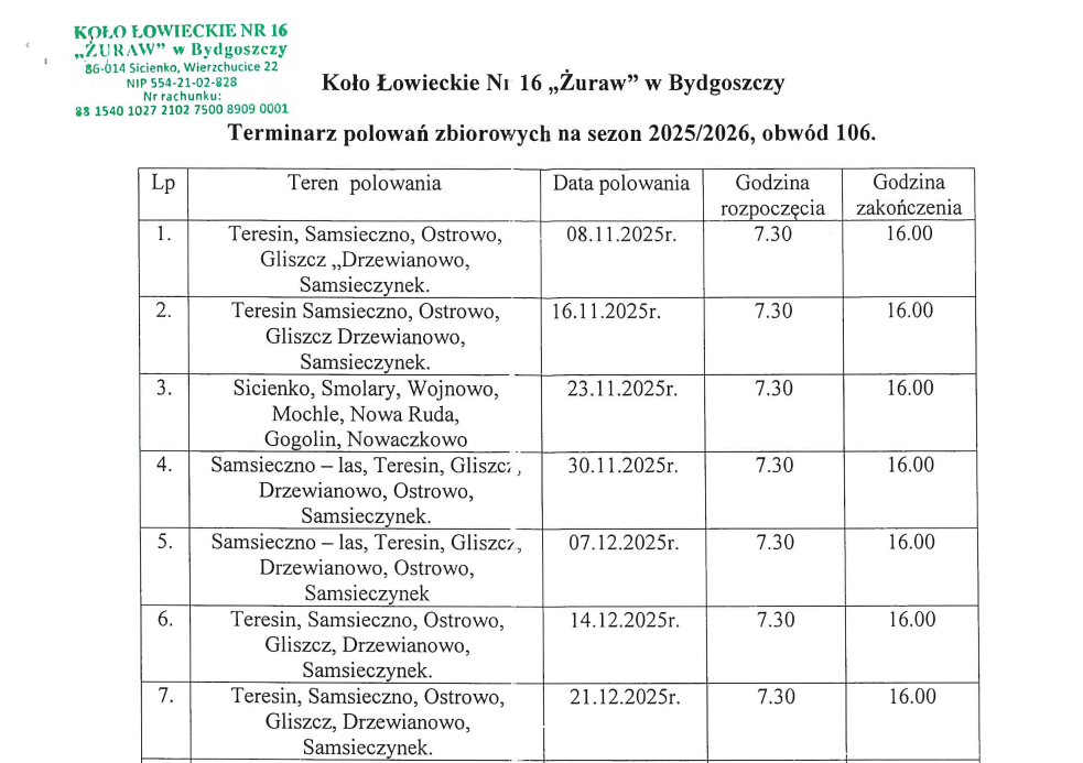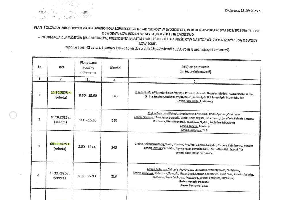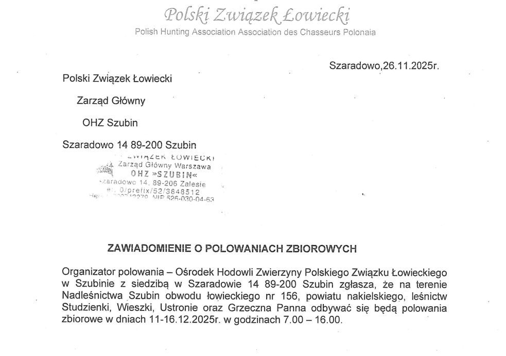 Sekcja Łowiectwo w BIP-ie gminy Nakło. Na liście polowania OZH Szubin, PZŁ Szubin oraz kół Borek i Noteć.