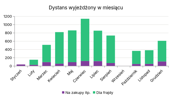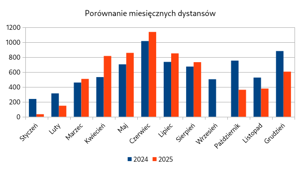 Tak jak przed rokiem, najdłuższy dystans wykręciłem w czerwcu, gdy przekroczyłem próg 1100 kilometrów – to najlepszy wynik od ośmiu lat. Najgorzej oczywiście wypadł wrzesień, gdy nie jeździłem wcale.